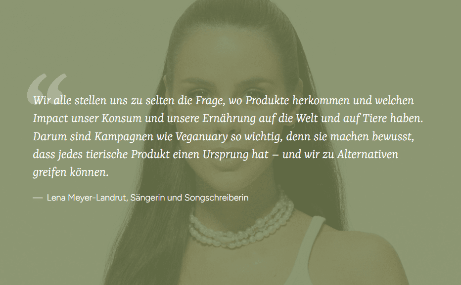 2024 hat Lena die Kampagne unterstütze. Jetzt 2026 wird sie weiterhin dafür verwendet => vegpool.de